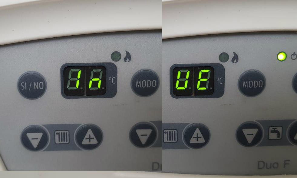 10) EN EL CASO DE QUE SE QUIERA PRENDER LA CALEFACCION, HACER CLICK EN EL BOTON MODO HASTA QUE APAREZCA LA LEYENDA IN (INVIERNO) PARA QUE FUNCIONE EL AGUA CALIENTE Y LA CALEFACCION.